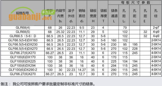 | GL型帶滾珠刮板鏈條技術(shù)參數(shù)表 | |||||||